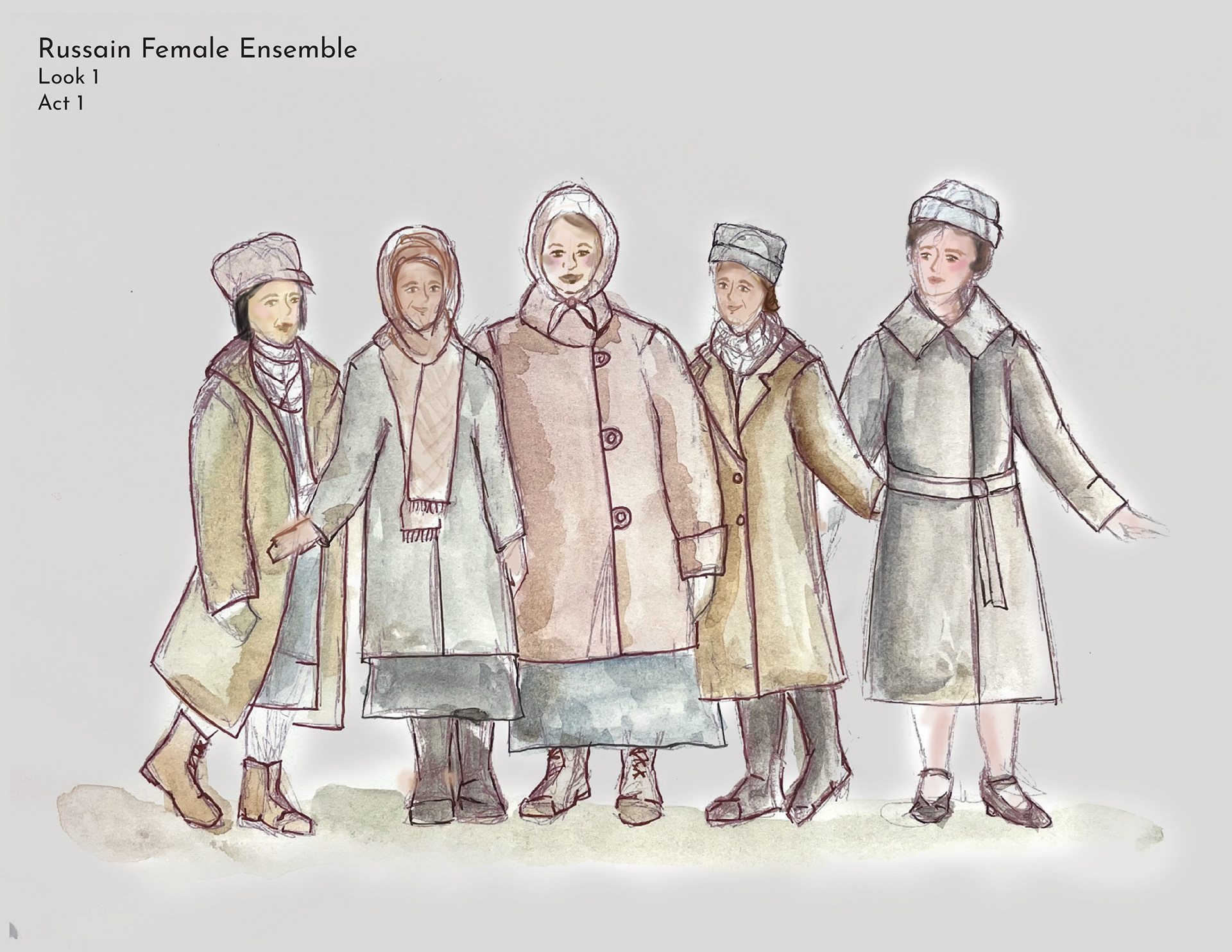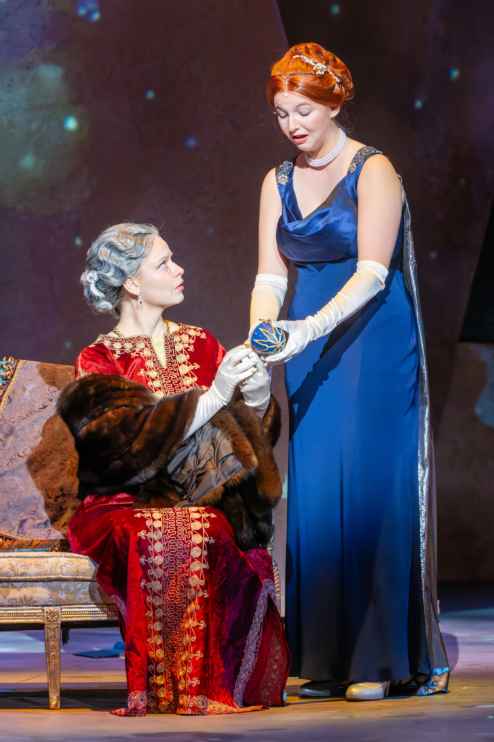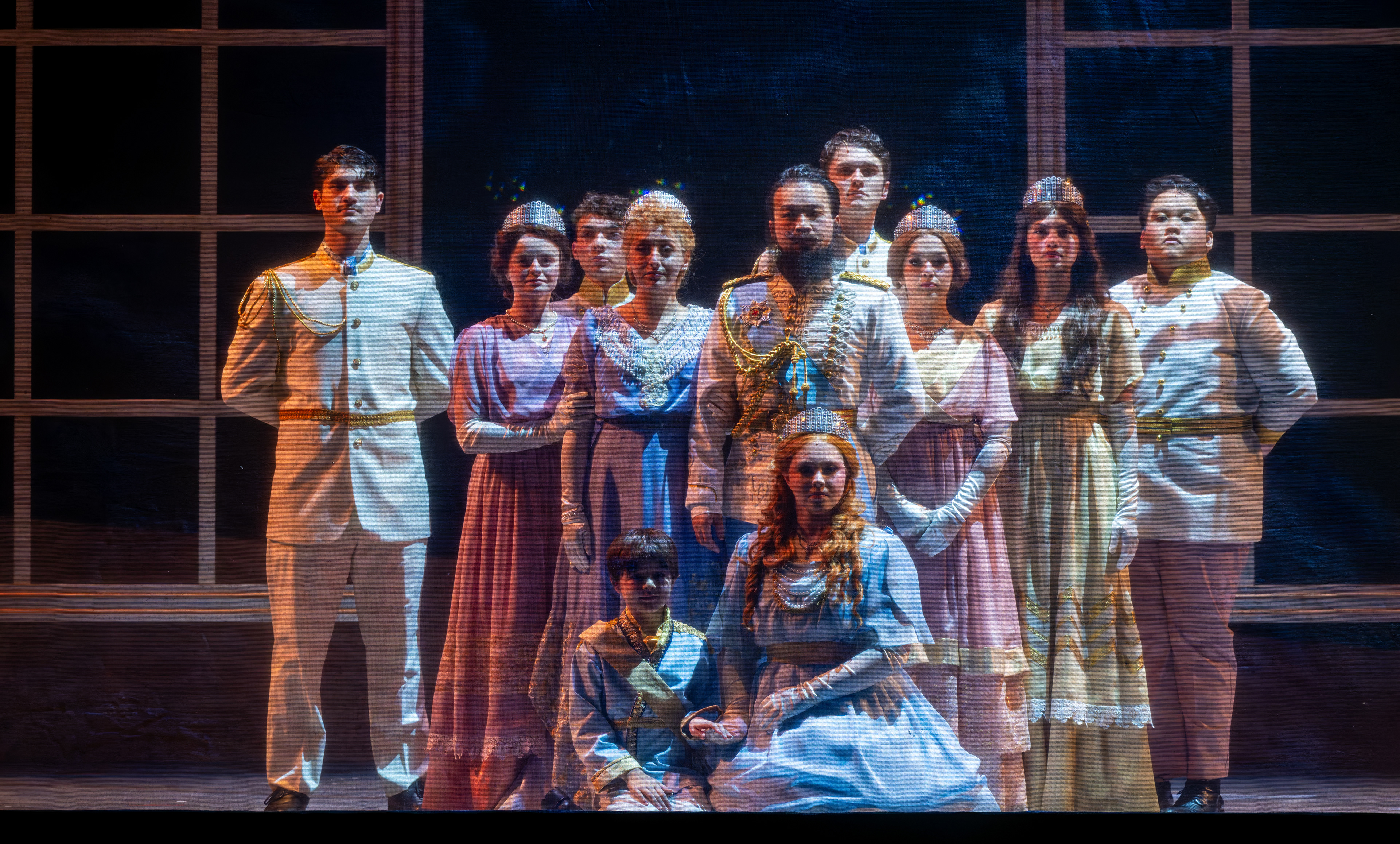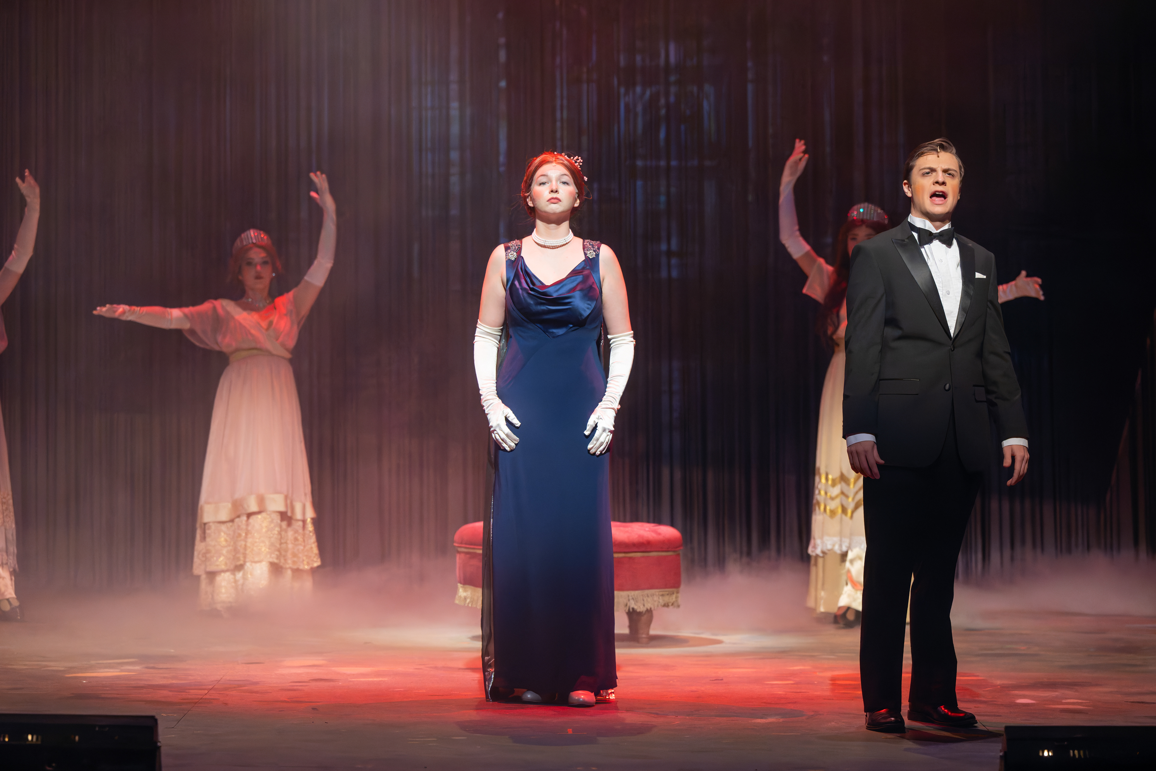This production of Anastasia was grounded in historical authenticity, with a strong emphasis on accurately representing the period. The costume design was informed by extensive research into the clothing of each location depicted in the story. In particular, the Romanov ballgowns were inspired by period garments worn by the Romanov family and formal dress styles of the 1910s, ensuring a visually authentic portrayal that reflects the elegance and historical context of the era.