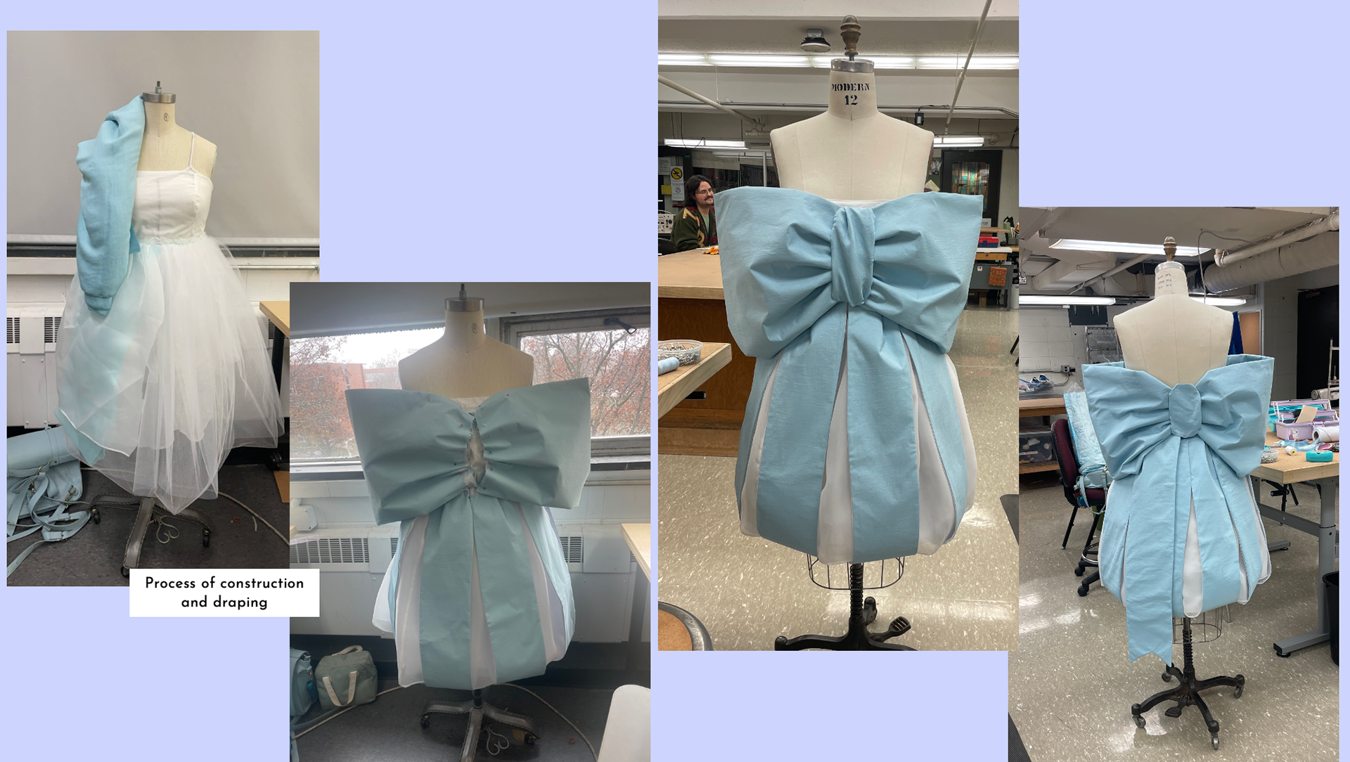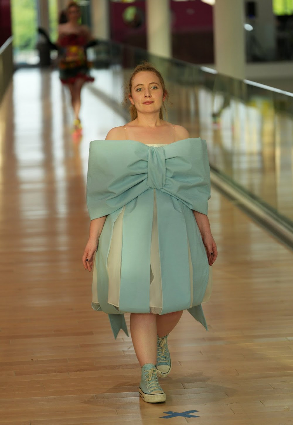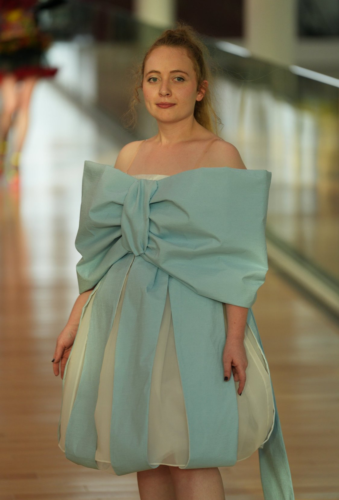 For this fashion show, I was prompted to create a look that expressed an aspect of my identity. I embraced softness and femininity, designing a bow that balances structural strength with a gentle, elegant presence. The piece is my own interpretation of a Tiffany bow—both delicate and boldly defined.