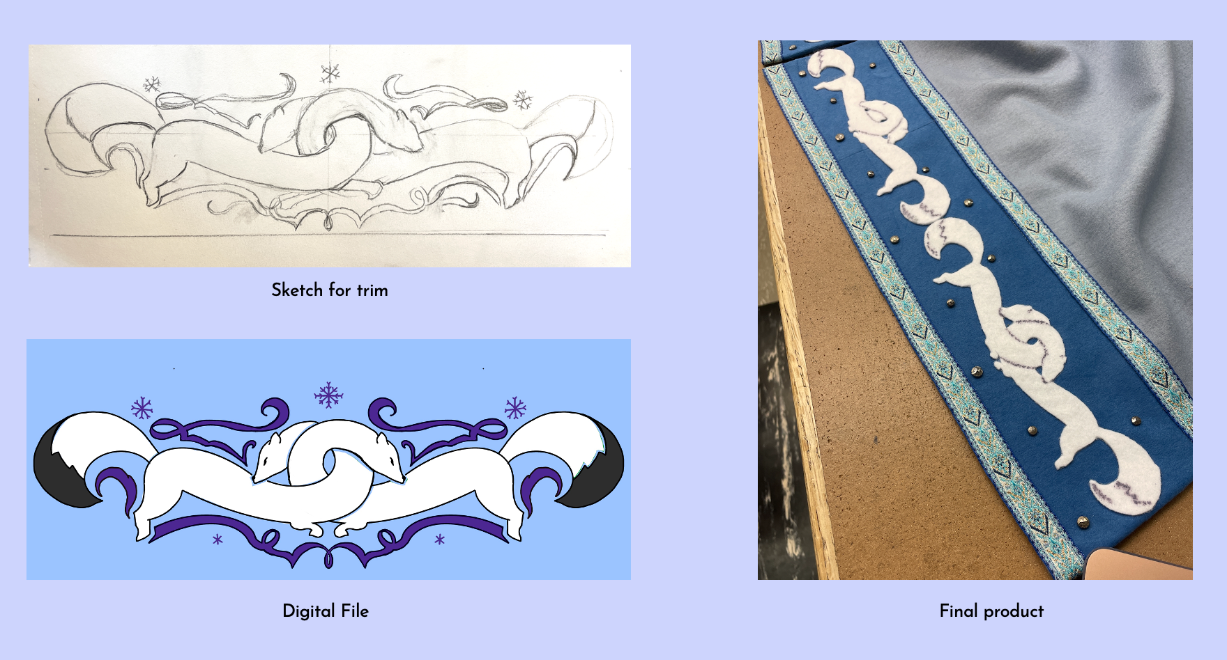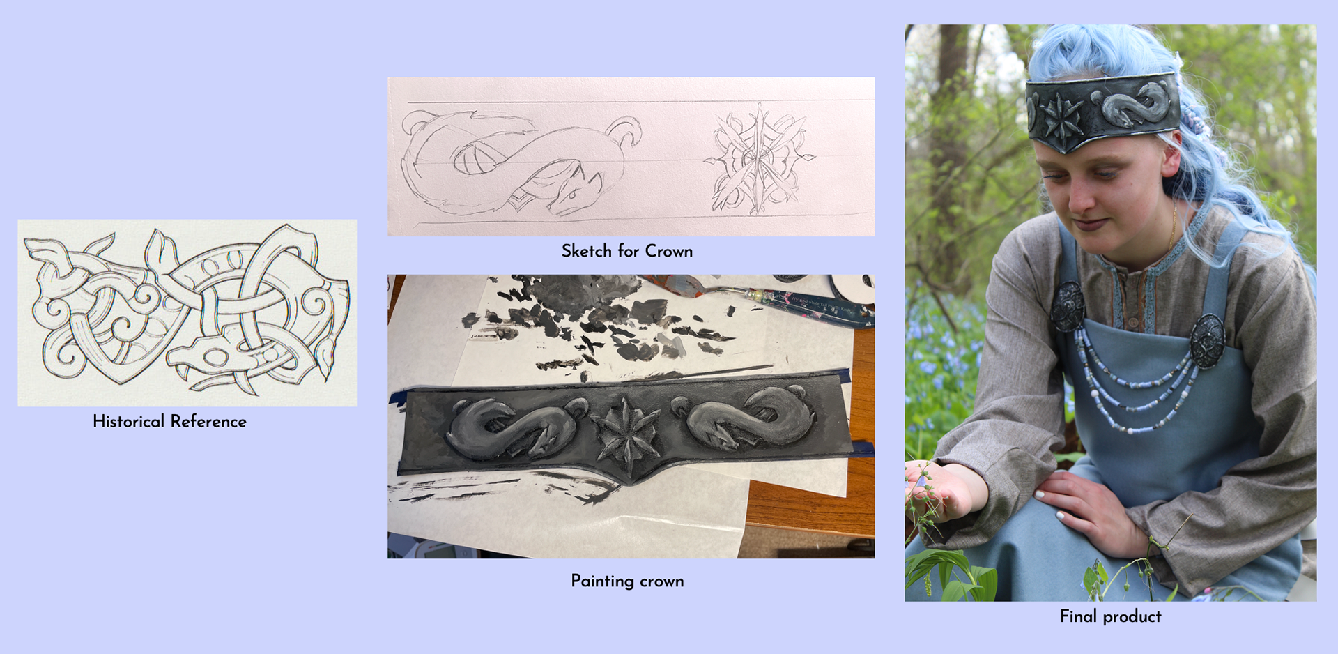For my MFA capstone project, I designed and realized a Viking Age Snow Queen. My process began with in‑depth historical research into the Viking Age, complemented by an exploration of snow goddesses and winter deities from across the northern regions. By blending cultural evidence and references, and imaginative world‑building, I developed a character design that captures the spirit of the viking age while embracing the magic and mythology of a fantastical figure.
